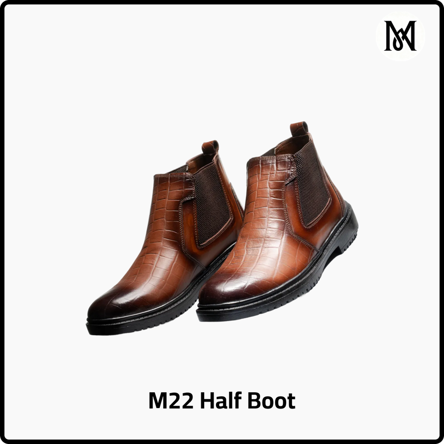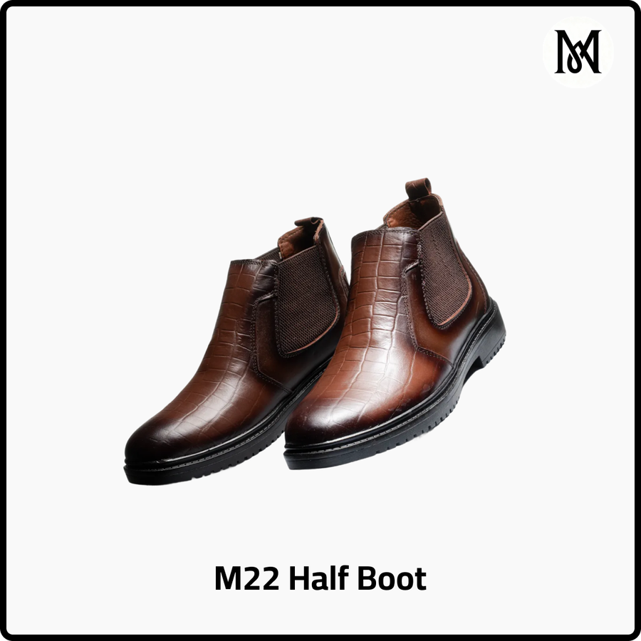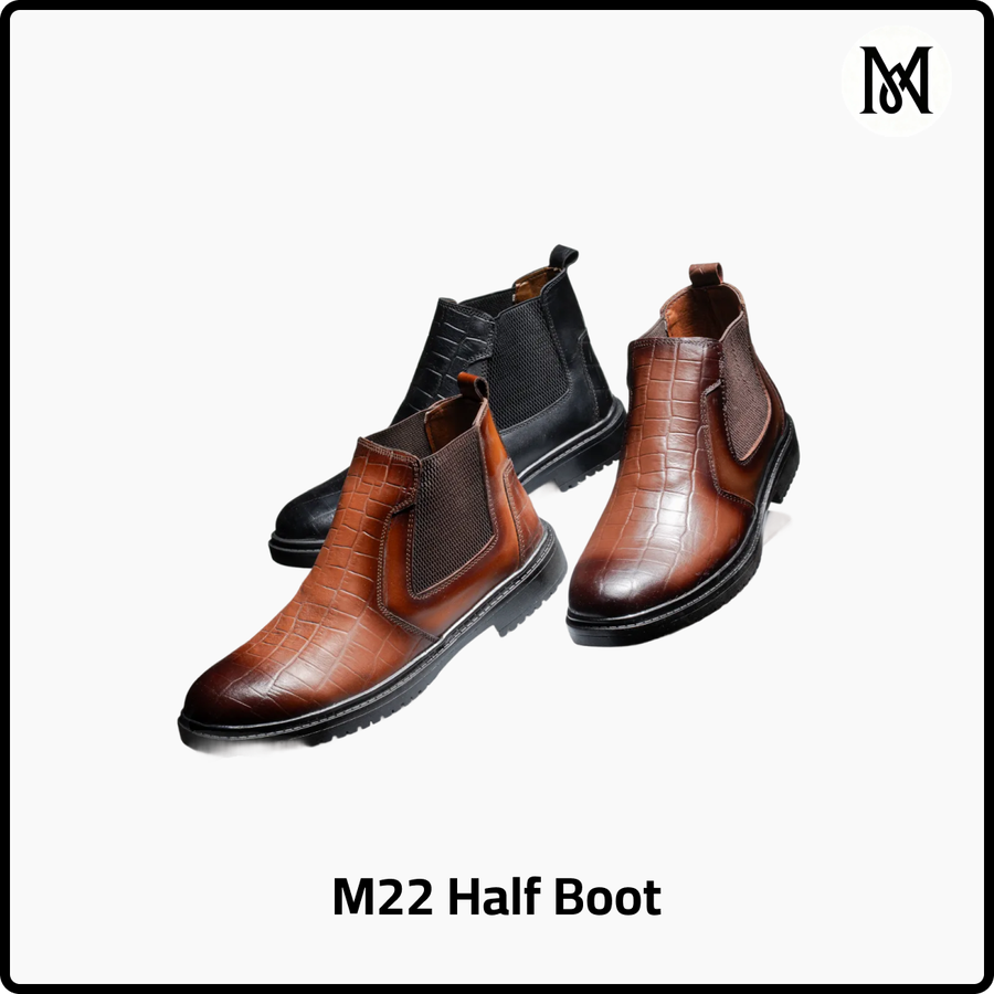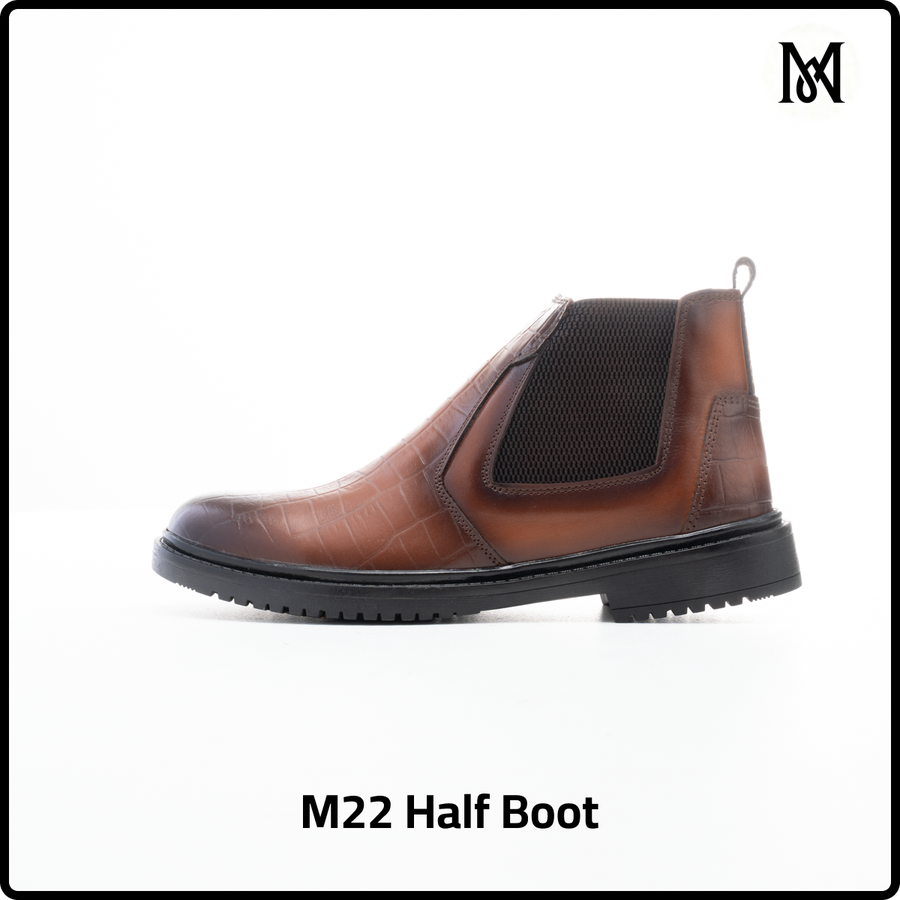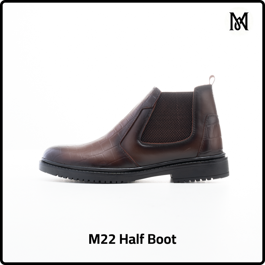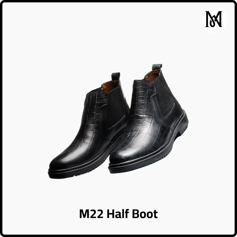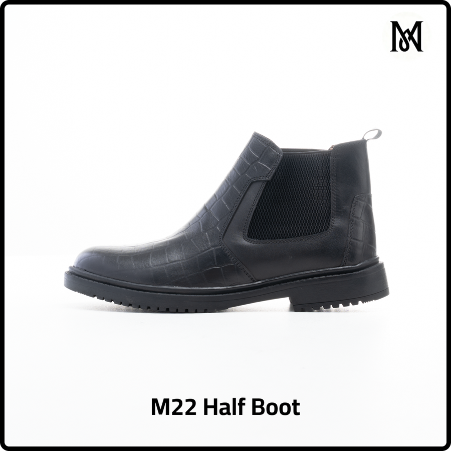 تميّز بالأناقة مع M22 Men’s Half Boot، الحذاء الرجالي المصنوع من جلد طبيعي فاخر بنقشة جلد التمساح ليمنحك مظهرًا راقيًا وملفتًا.